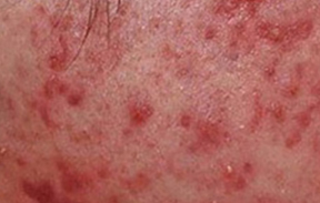 면포, 붉은 구진, 고름이 든 농포가 많이 형성되어 여러 개의 농포가 뒤엉켜 중증의 상태가 되기도 합니다.